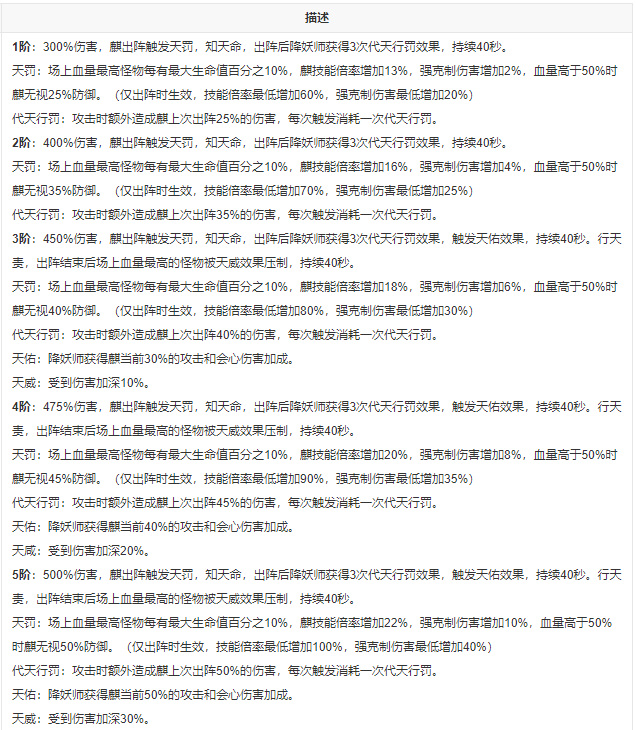 3、如果麟出阵,那么拥有祥威BUFF的妖灵最大可以增加100%/150%/200%会心伤害,附加20%/30%/40%麟攻击;当麟达到3/4/5阶时,每会心一次,提升1.6%/2.4%/3.2%会伤结果。
