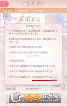 说明页面上的括号内写着:和每位好友每天最多两次。这句话的意思其实是:你和B好友,每天每项最多加两次亲密度,每次+4(帷幕/印象),忆海则是+8。那么在忆海开之前,每天最多+16亲密度。