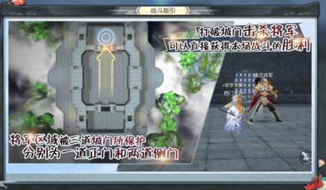 将军区域被三道城门所保护,分别为一道正门和两道侧门,打破城门击杀将军,可以直接获得本场战斗的胜利。