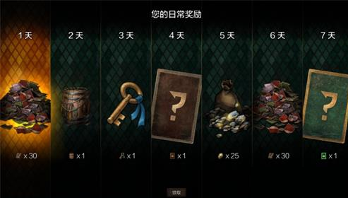 根据累计登录天数来领取相应的奖励,每累计登录七天就重置奖励,具体奖励一至七天分别为:30碎片、一个核心牌桶、一点奖励点、一张随机卡牌、25矿石、30碎片、一张随机闪卡。