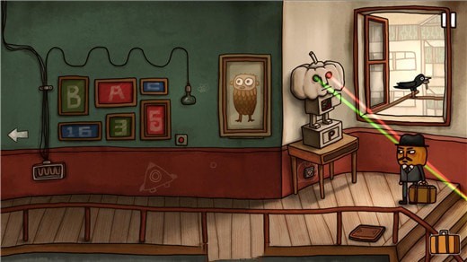 走上木梯使用锤子敲掉窗子木板,打火机点燃保险箱上提灯,得到字母ABCD,根据条纹对照箱子里数字表得到密码。