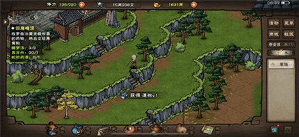 到忘忧村找商铺老板打听得知在西边山洞,在山洞中一直选威胁可以直接不打就得到山水画,画中有说明宝藏地点的藏头诗;
