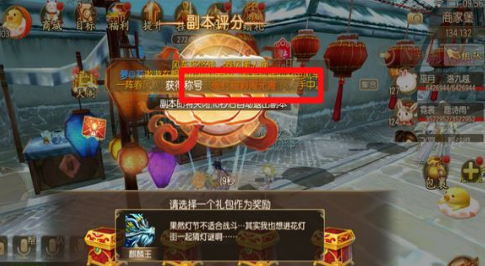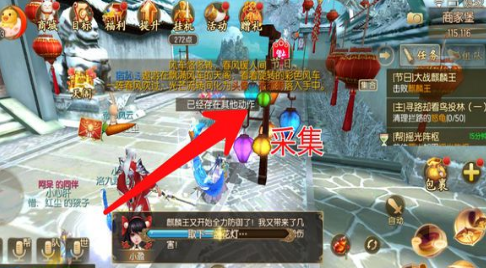 最后一关。打一下大boss,随后出现一个提示,采集旁边的花灯。(花灯两个位置一个左边,一个在入口右边)