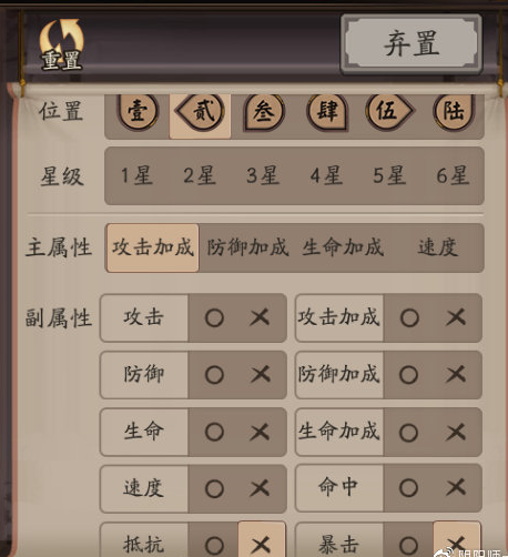 5,二号主属性攻击加成和生命加成,副属性不带暴击抵抗的全部弃置。