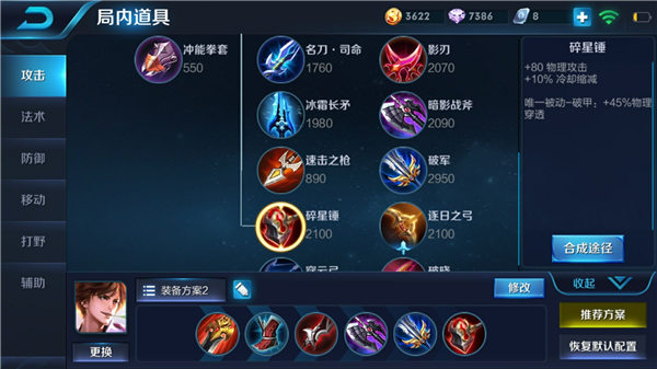 六神装:贪婪之噬,冷静之靴,泣血之刃,暗影战斧,破军,碎星锤