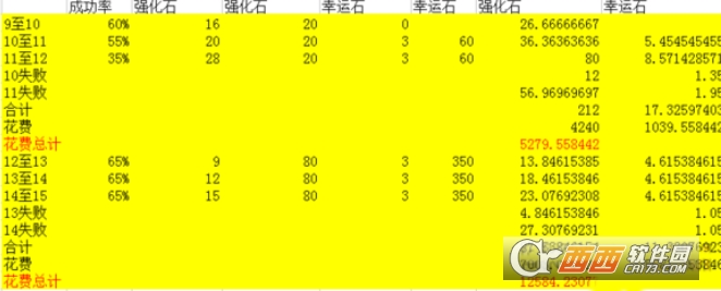 只说9-15的强化,9-10不用强化石,10-11和11-12用5%的小幸运石,强化一件数学期望彩罗5280,强化一套彩罗36960,差不多4.8个648。12-15都要用15%的大幸运石,强化一件数学期望彩罗12584,强化一套彩罗88088(吉利吧),差不多11.5个648。可以理解为1万块15套(别说你+15了都没买礼包没打过星座)。