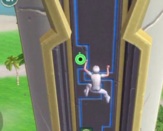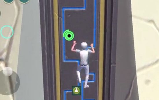 2、爬到有中间会出现一个小平台,慢慢往旁边移动,超过平台后记得再移到平台上休息,恢复体力。否则继续爬,会没体力摔死!