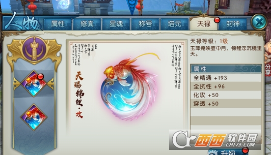 1.天禄属性的作用简单说明:化功——降低对手攻击;御攻——避免被对手削减攻击;穿透——避免对手增加防御;韧性——提高自身防御。