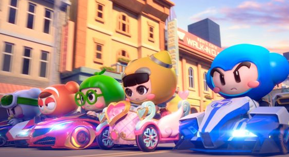 水泡炸弹:向赛车车头前方投掷一枚滚动向前的水泡,水泡碰到障碍物会反弹,释放后4秒或碰撞到其他车友会发生爆炸,将范围内车友禁锢起来。