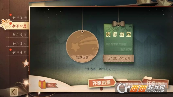 有3种类型的愿望可供选择,玩家每次许愿时可选择1种
