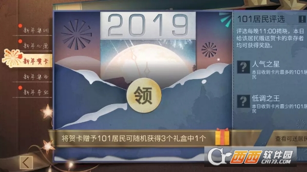 2018年12月27日至2019年1月9日活动期间,幸存者们可以在新年活动界面领取贺卡,领取贺卡后,可以赠予101居民,能随机获得居民的新年礼盒。