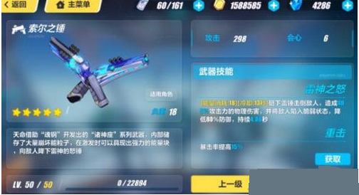 首先这两把武器都有着相似的属性,那就是脆弱,但二者最大区别也是在于脆弱上,索尔之锤脆弱减防80%,持续4秒,天穹撕裂者脆弱减防60%持续12秒,从这里就可以看出来二者的定位有着明显的区别;