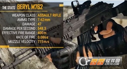 属性:子弹7.62MM、伤害47、射程400m、射速0.086S、子弹30发。