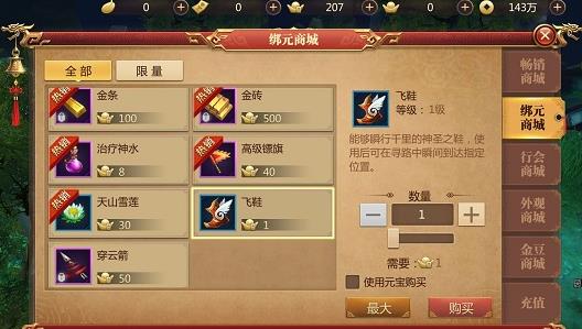 刚开始会送20双,后续可以通过登录活动获得,不过活动获得的数量并不多,用完之后就是需要购买。在商城的绑元商城可以直接购买到小飞鞋,一双是1绑元,有绑定元宝的可以多买点备用哦。